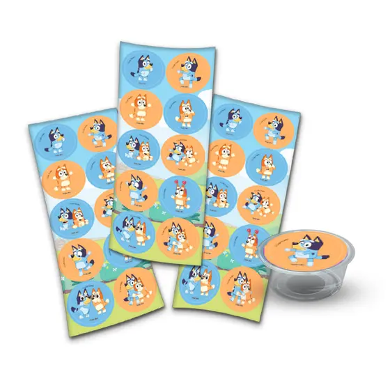 A festa vai ganhar um toque extra de fofura com os adesivos redondos da Bluey! Com 30 unidades cheias de cor e alegria, esses adesivos são perfeitos para personalizar lembrancinhas, copos, sacolinhas, convites e o que mais sua imaginação mandar! 💙