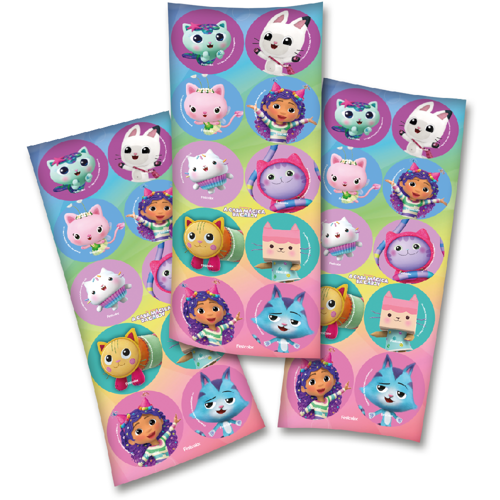 Adesivo Redondo Decorativo Casa Mágica da Gabby - 30 unidades - Festcolor / Mais Festa