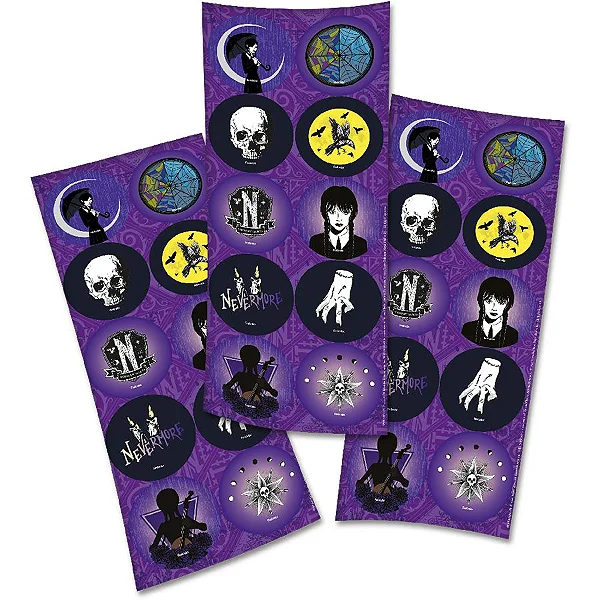 🖤 40 Adesivos redondos com estampas exclusivas da Wandinha