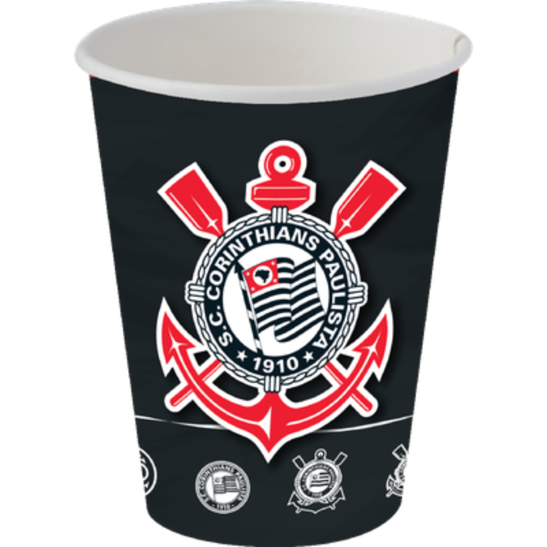 Ideal para quem vive o Corinthians dentro e fora dos estádios, esse kit com 8 copos de papel vai levar toda a emoção do futebol direto pra sua comemoração! Feitos em papel resistente de alta qualidade, cada copo tem capacidade para 200ml — perfeito para servir sucos, refrigerantes e até aquele brinde especial entre torcedores! 🥤🖤