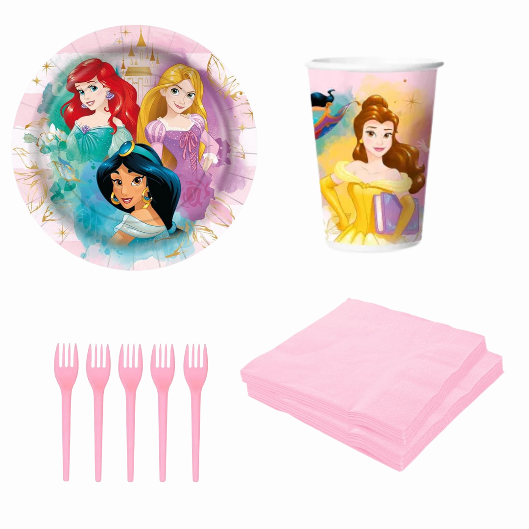 Kit Festa Princesas – Completo com Copos, Pratos, Guardanapos e Garfos 👑🎉🌸