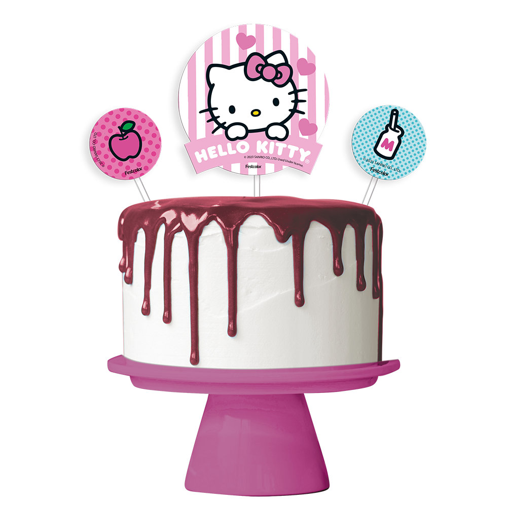 Deixe seu bolo ainda mais lindo com o charme da Hello Kitty! Com esse kit de topo de bolo, a mesa principal vai ganhar aquele toque especial que só a gatinha mais fofa do mundo sabe dar! 🌸