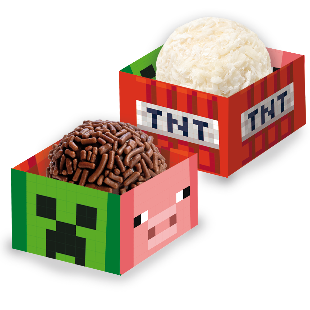 Perfeitos para brigadeiros, beijinhos e outros quitutes deliciosos, eles trazem estampas inspiradas no universo pixelado que a criançada (e os adultos também!) ama! 🧱🎮