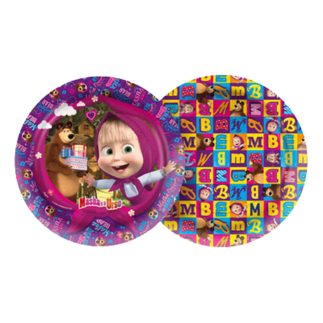 Os pratos de papel Masha e o Urso são ideais para completar a decoração da sua mesa com charme e praticidade. Com ilustrações lindas e cores vivas, eles encantam os convidados e deixam tudo no clima da floresta mais divertida das telinhas! 🌼🍯