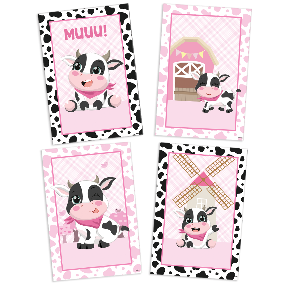 🖼️ Contém: 4 quadros decorativos com tema vaquinha