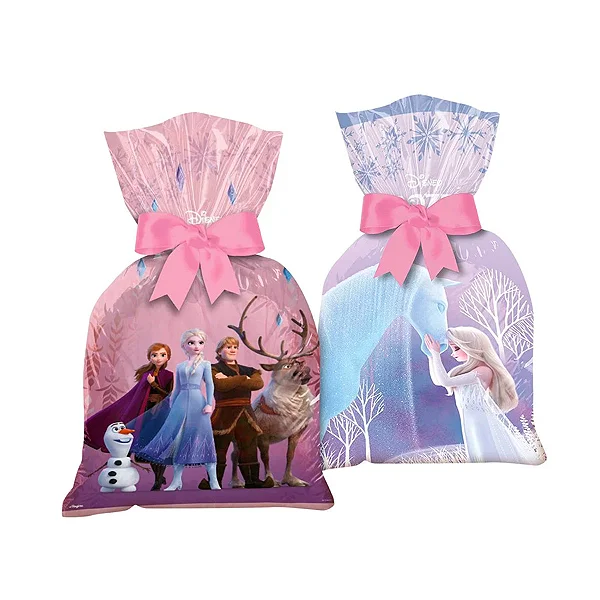 Com a Sacola Plástica Frozen, cada convidado leva um pedacinho do reino gelado pra casa — e a festa continua na memória (e nos docinhos!) ❄️🎁✨